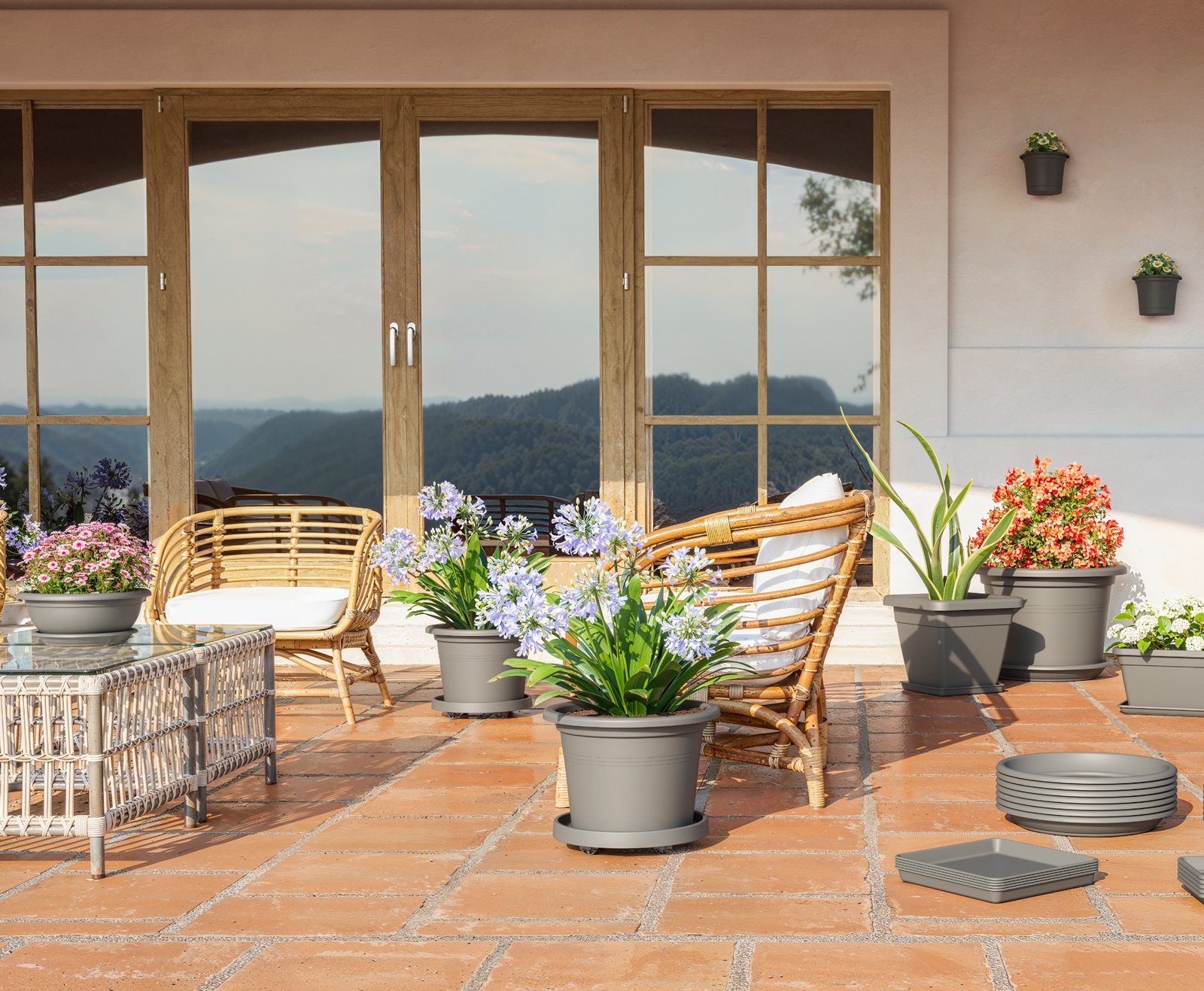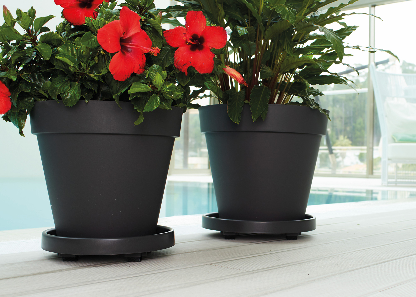Desenvolvemos os nossos pratos redondos e retangulares como complemento ideal da nossa coleção de vasos e floreiras de terracota, oferecendo versatilidade e funcionalidade a qualquer contexto decorativo. Devido ao seu acabamento à prova de água, os nossos pratos possibilitam o uso de toda a nossa coleção em ambiente indoor.